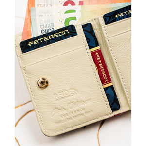 Peterson sieviešu maks, kas izgatavots no mākslīgās ādas, krāsains un kompakts, lieliski piemērots ikdienas lietošanai.