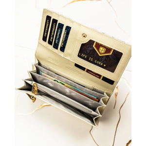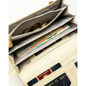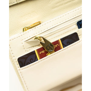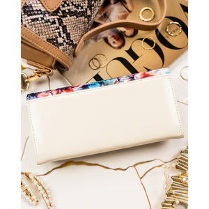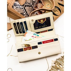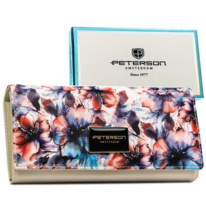 Peterson sieviešu maks, kas izgatavots no mākslīgās ādas, bēšas un zilas krāsu kombinācija.
