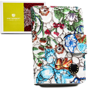 Peterson sieviešu maks, kas izgatavots no īstas ādas ar ziedu rakstu.