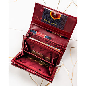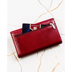Peterson sarkans sieviešu maks, kas izgatavots no īstas ādas ar RFID aizsardzību.