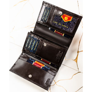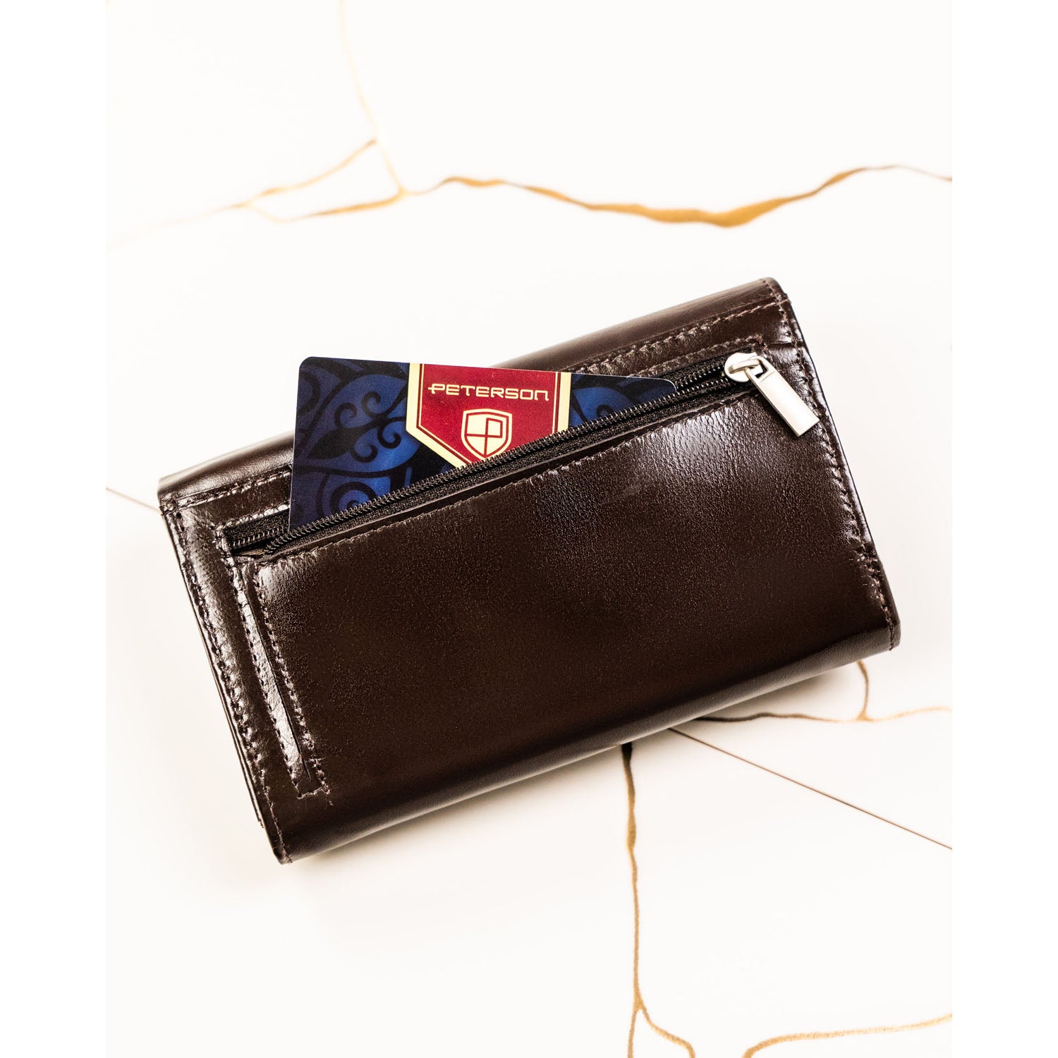 Piniginė moterims Peterson, ruda G13 – tai vidutinio dydžio, horizontali moteriška piniginė iš natūralios odos, su patogiai išdėstytais skyriais ir integruota RFID apsauga jūsų kortelėms bei dokumentams.