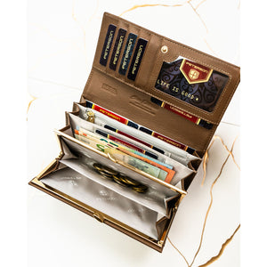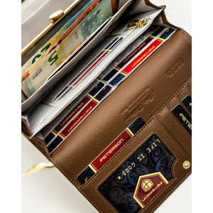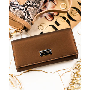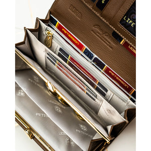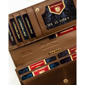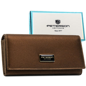 Peterson sieviešu maks, izgatavots no mākslīgās ādas, brūnā krāsā, ar RFID aizsardzību.