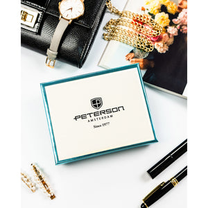 Peterson sieviešu maks, izgatavots no mākslīgās ādas, bēšā krāsā, ar RFID aizsardzību.