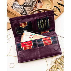 Peterson sieviešu maks, izgatavots no mākslīgās ādas, violetā krāsā, ar RFID aizsardzību.