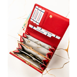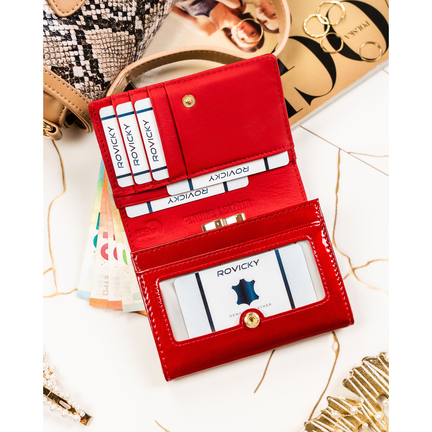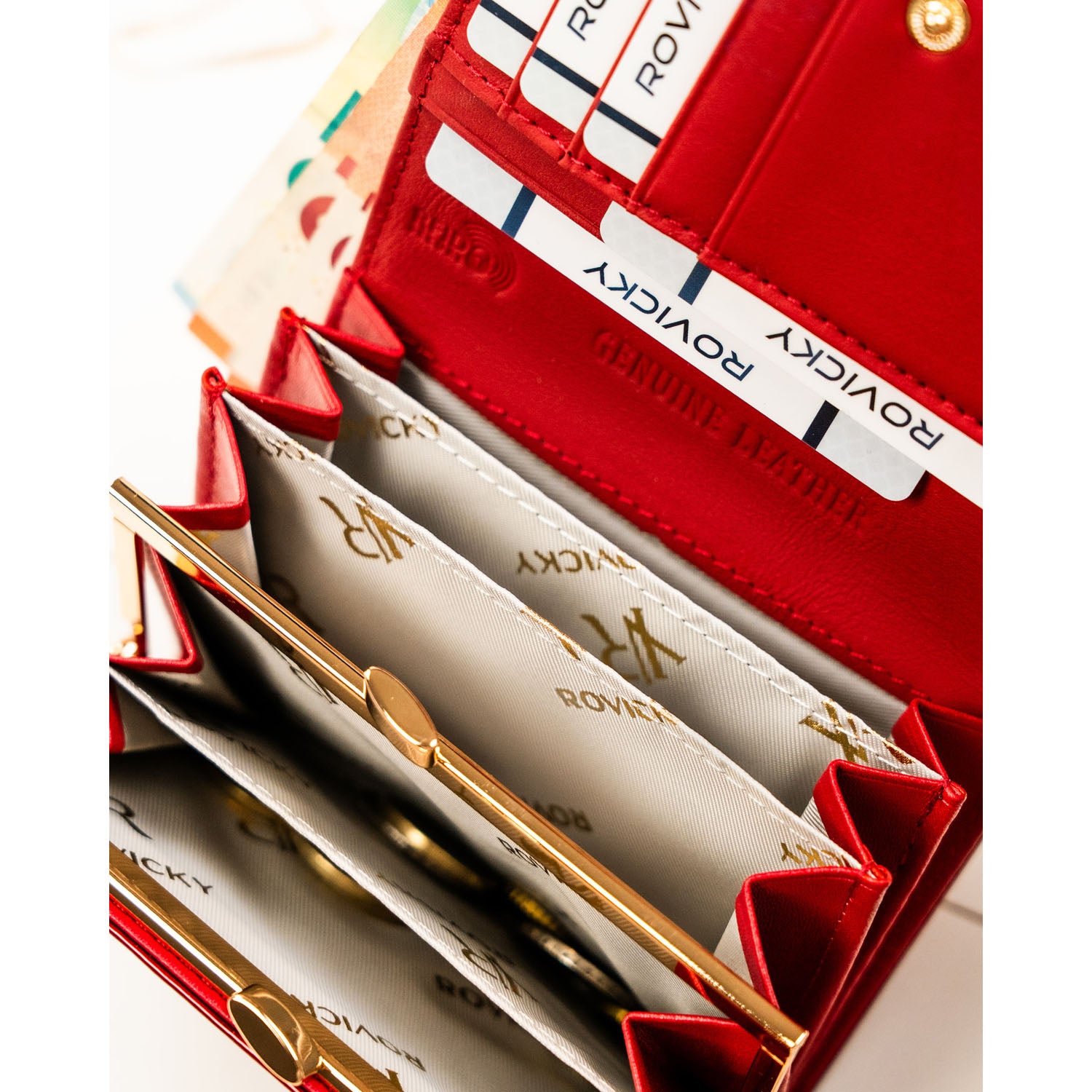 Ši raudona odinė piniginė Rovicky – praktiškas ir elegantiškas pasirinkimas kasdieniam naudojimui, derinantis kompaktišką dydį ir gerai apgalvotą vidaus išplanavimą.