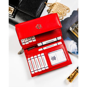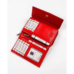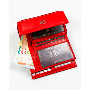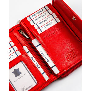 Rovicky sarkana sieviešu rokassoma no īstas ādas ar RFID aizsardzību, kas lieliski piemērota ikdienas lietošanai.