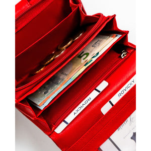 Rovicky sieviešu sarkanā ādas rokassoma ir eleganta un praktiska izvēle.