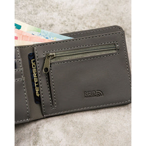 Peterson vīriešu rokassoma, izgatavota no mākslīgās ādas, pelēkā krāsā, ar RFID aizsardzību.