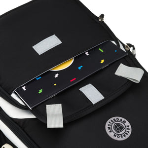 Peterson melna liela mugursoma ar diviem nodalījumiem, kas izgatavota no poliestera, ir lieliski piemērota ikdienas lietošanai.
