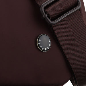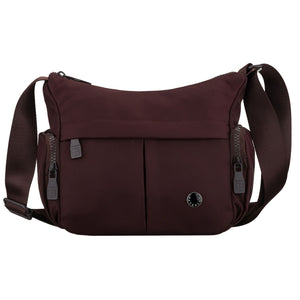Maža bordo spalvos moteriška crossbody rankinė iš poliesterio – patogi kasdieniam nešiojimui per petį.