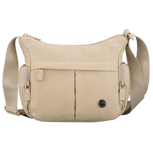 Maža moteriška Peterson crossbody rankinė iš poliesterio – patogi kasdienė ecru spalvos rankinė su keliais skyriais ir kišenėmis.