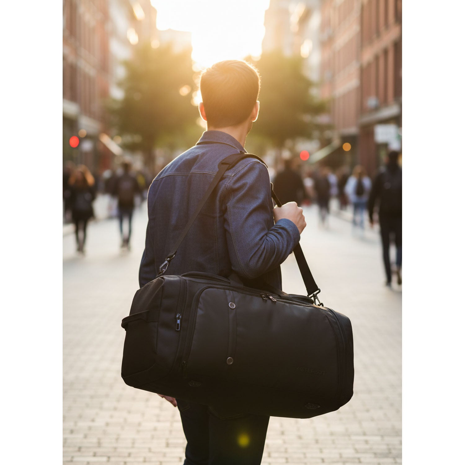 - Dizainas: juodos spalvos furnitūra ir užtrauktukai, minimalistinis miesto stiliaus dizainas