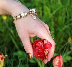 Šī elegantā rokassprādze ir izgatavota no augstas kvalitātes metāla un dekorēta ar spīdīgiem cirkoniem, radot greznības sajūtu.