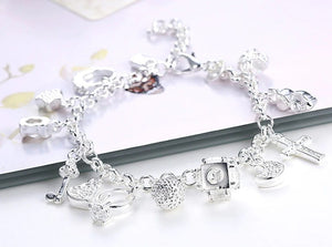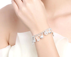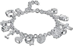 Sudraba rokassprādze ar kuloniem ir daudzpusīgs aksesuārs, ko viegli pieskaņot jebkuram gadījumam.