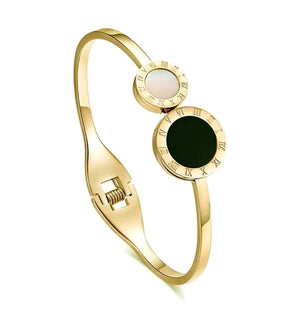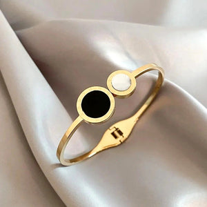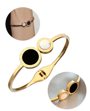 Šī elegantā rokassprādze ir izgatavota no augstas kvalitātes nerūsējošā tērauda, kas ir hipoalerģisks un izturīgs. Tā ir lieliska izvēle gan ikdienas, gan elegantam stilam.