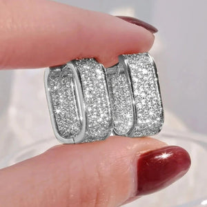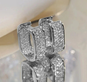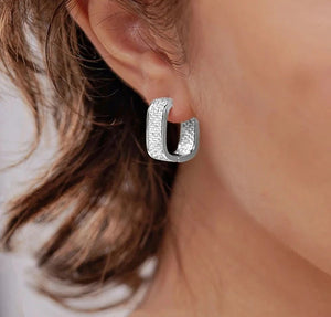 Šiem elegantajiem sudraba krāsas auskariem ir ģeometrisks dizains un tie ir dekorēti ar cirkoniem, kas tiem piešķir īpašu šarmu.