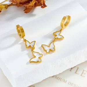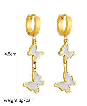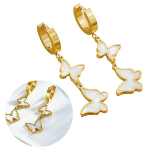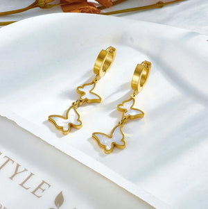 - Unikāls dizains: gari, karājoši auskari tauriņa formā.
