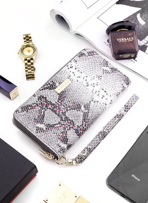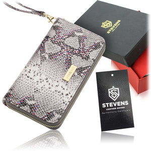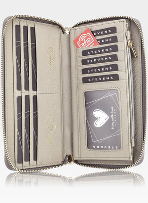 Liela ādas sieviešu maks STEVENS pelēks + rozā