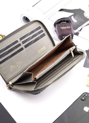 Liela ādas sieviešu maks STEVENS pelēks + rozā D1933