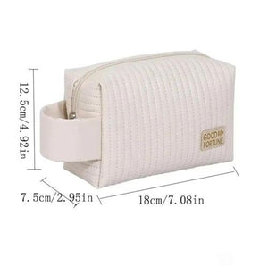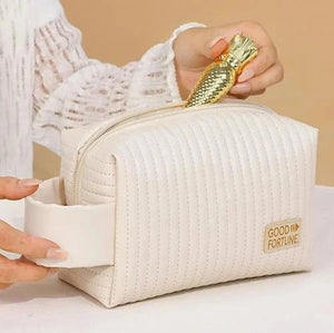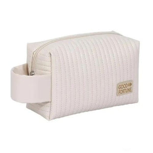 Šī elegantā bēšā kosmētikas somiņa ir izgatavota no organiskas ādas un ir lieliski piemērota gan ikdienas lietošanai, gan ceļojumiem.