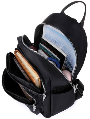 Mugursomu var nēsāt uz muguras vai pār plecu. Tai ir divas sānu kabatas un četras ārējās kabatas ar rāvējslēdzējiem. Galvenais nodalījums arī aizveras ar rāvējslēdzēju, un aizmugurē ir papildu kabata ar rāvējslēdzēju. Iekšpusē atradīsiet vienu kabatu ar rāvējslēdzēju.