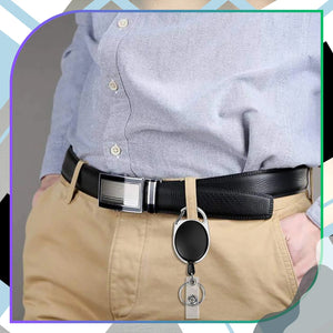 Krāsa un unikālas īpašības: Melns dizains ar 360° rotējošu turētāju nodrošina kustību brīvību. Elastīgā aukla automātiski atgriežas pie ķermeņa papildu ērtībām.
