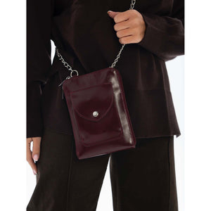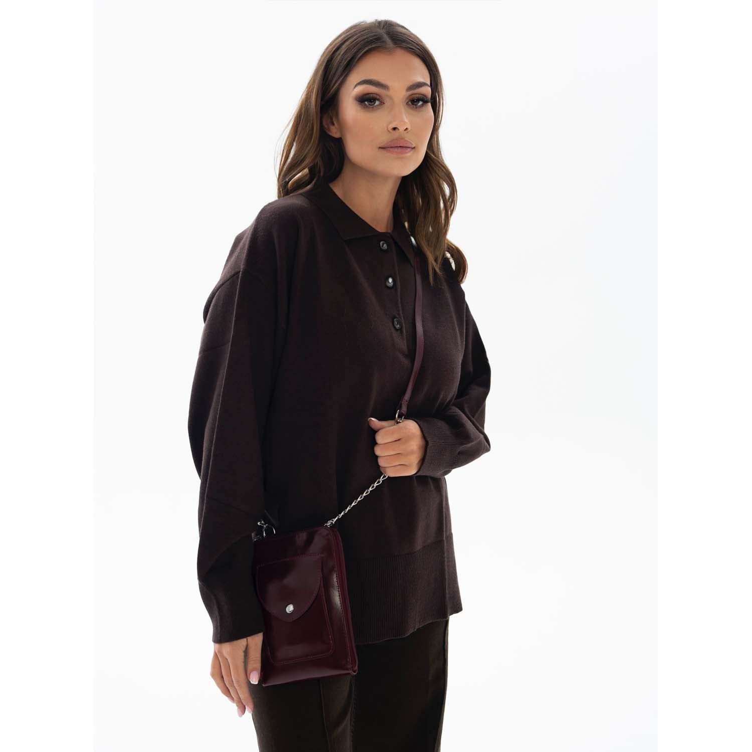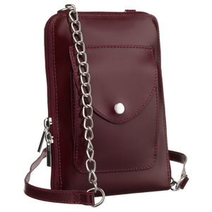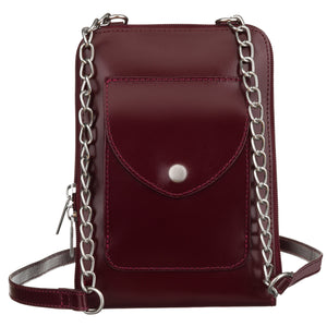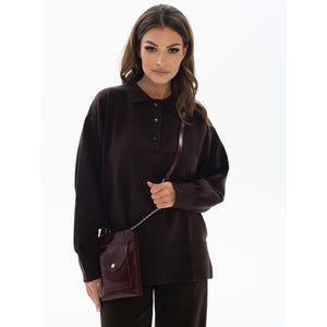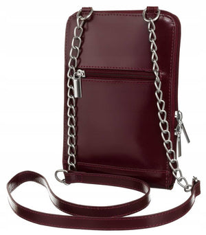 Bordo sieviešu rokassoma, kas izgatavota no īstas ādas, ir stilīga un praktiska izvēle.