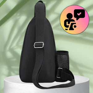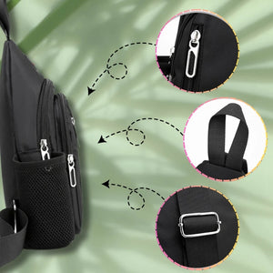 - Regulējamā siksna ļauj ērti nēsāt mugursomu uz priekšpuses, muguras vai sāniem, lai ērti piekļūtu tās saturam.
