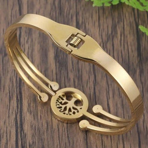 Šī elegantā rokassprādze ir izgatavota no apzeltīta ķirurģiskā tērauda, kas ir nerūsējošs un hipoalerģisks. Tā ir lieliska izvēle gan ikdienas, gan elegantam stilam.