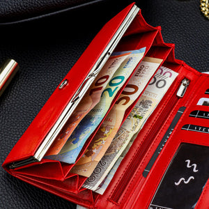 Šis elegantais sieviešu maks ir izgatavots no augstas kvalitātes īstas ādas, nodrošinot izturību un stilīgu izskatu. Makam ir integrēta RFID aizsardzība, kas palīdz aizsargāt jūsu bezkontakta kartes datus no nevēlamas skenēšanas.