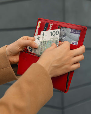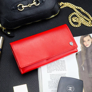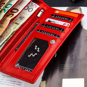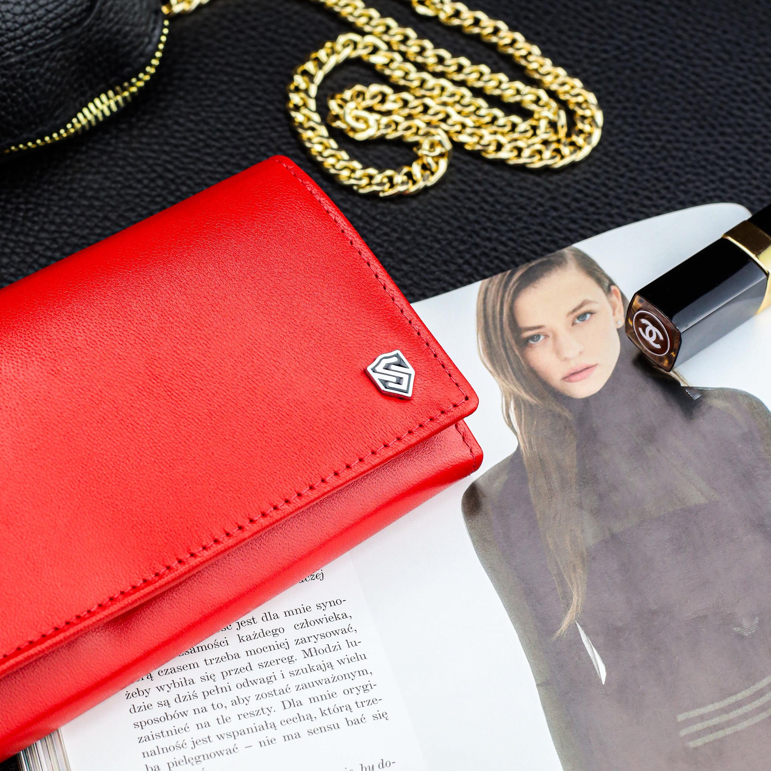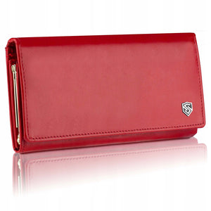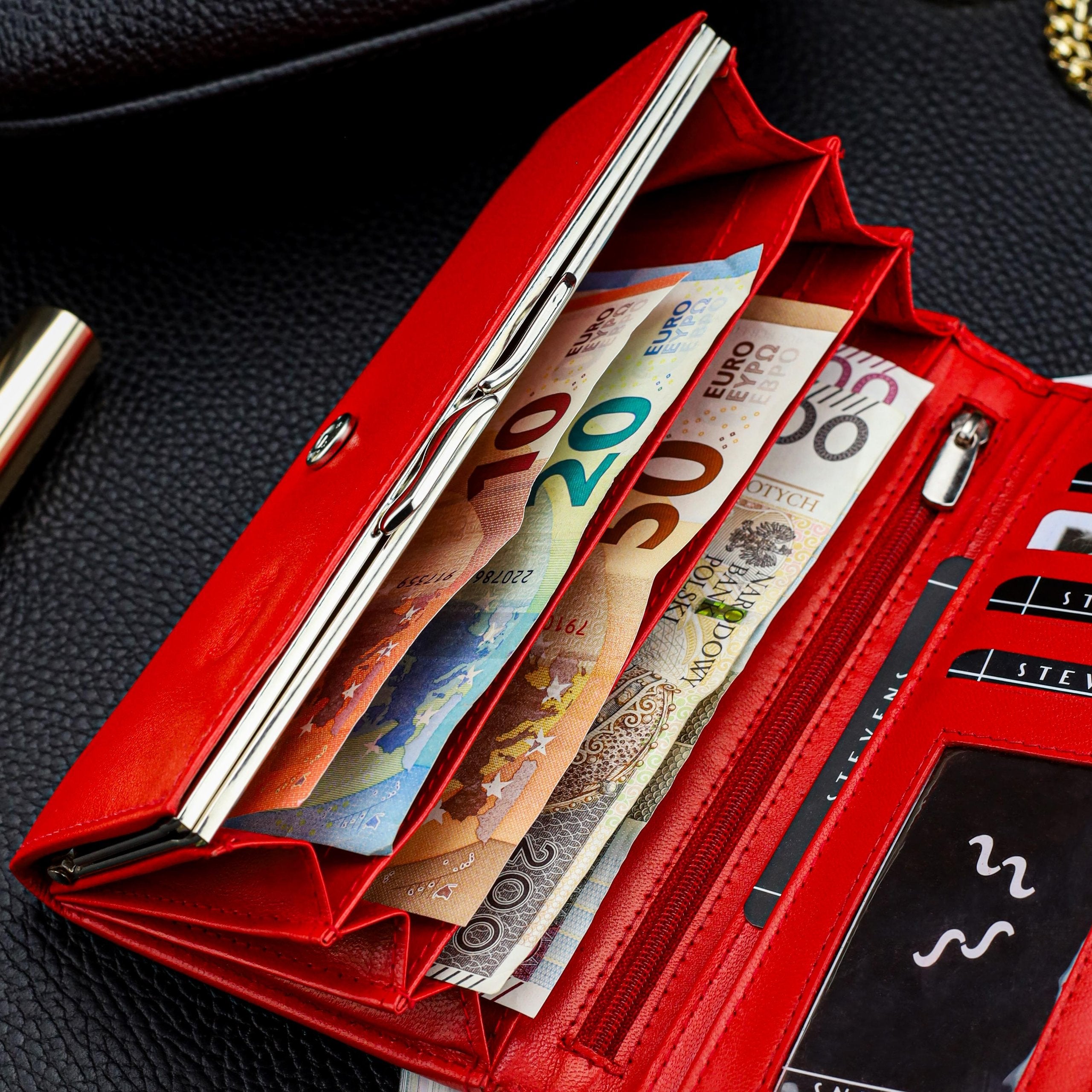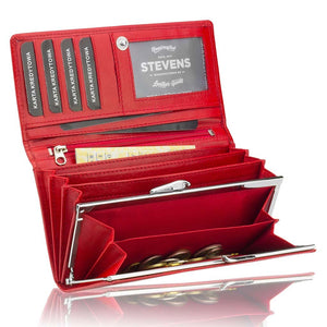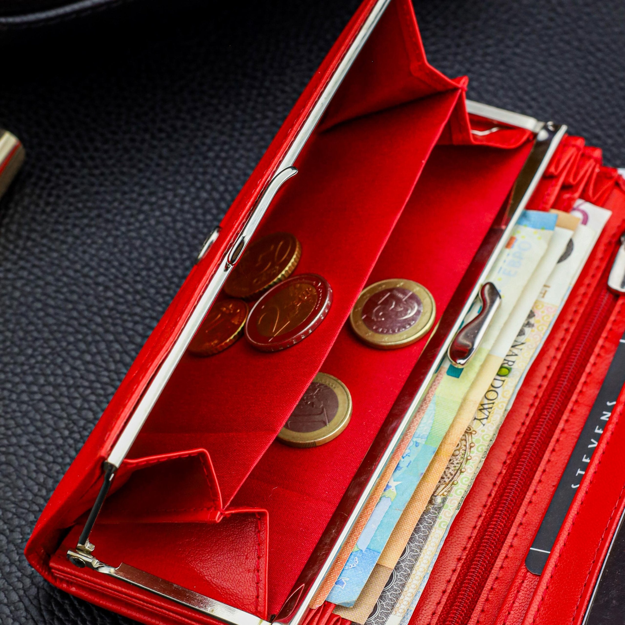 Sieviešu ādas maks "STEVENS" Z03-099 pagarināts sarkans ar RFID aizsardzību