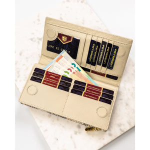 Šis elegantais sieviešu maks ir lieliski piemērots ikdienas lietošanai pilsētā. Izgatavots no īstas ādas, tas ir bēšā krāsā ar čūskādas rakstu, kas piešķir tam unikālu stilu.