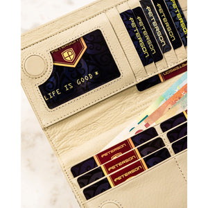 Šis maks ir ne tikai stilīgs, bet arī funkcionāls, ar vairākām karšu vietām un RFID aizsardzību, lai jūsu dati būtu drošībā.