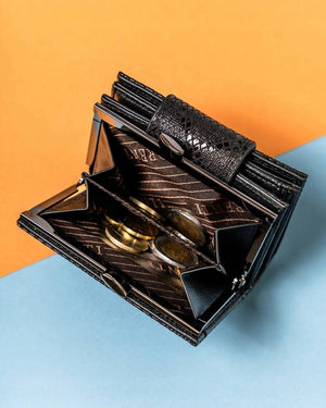 - Monētu kabata: Āķa aizdare ērtai piekļuvei monētām un to drošai glabāšanai.