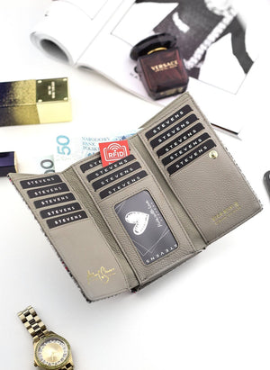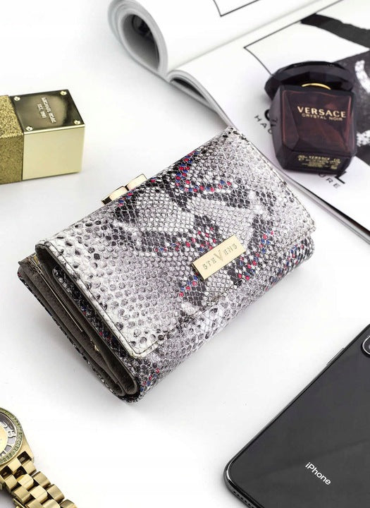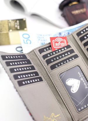 Stevens P16 sieviešu maks ir elegants un funkcionāls aksesuārs, kas izgatavots no augstas kvalitātes īstas ādas. Šis maks ir ne tikai stilīgs, bet arī praktisks, jo tam ir RFID aizsardzība, kas nodrošina jūsu bezkontakta kartes datu drošību.