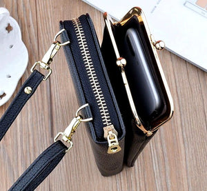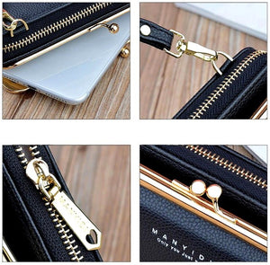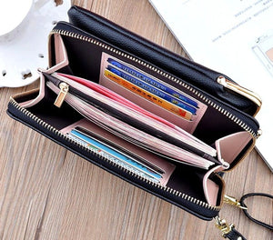 Iekšpusē atradīsiet nodalījumu ar rāvējslēdzēju un kabatas 6 kredītkartēm.