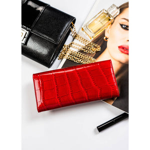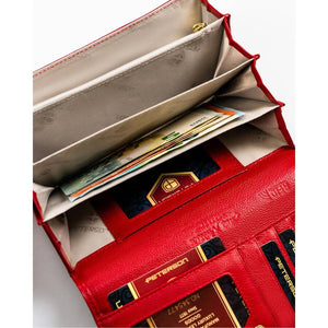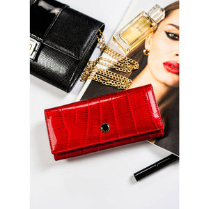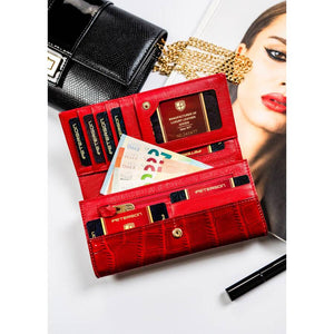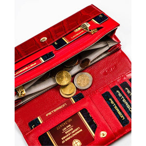 Šis elegantais sieviešu maks no Peterson kolekcijas ir izgatavots no augstas kvalitātes īstas lakotas ādas. Spilgti sarkanā krāsa piešķir ekskluzivitāti un stilu. Lielais izmērs nodrošina, ka jums būs pietiekami daudz vietas visām jūsu kartēm un skaidrai naudai. Makam ir arī RFID aizsardzība, kas palīdzēs aizsargāt jūsu personas datus no neatļautas skenēšanas. Ar 6-10 karšu nodalījumiem šis maks ir praktiska un stilīga izvēle ikvienai sievietei.