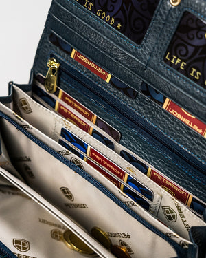 Šis elegantais sieviešu maks no Peterson ir izgatavots no augstas kvalitātes īstas ādas, kas nodrošina izturību un stilīgu izskatu. Zilā krāsa piešķir šim makam atšķirīgu un elegantu izskatu.