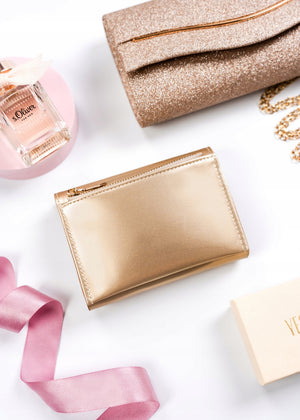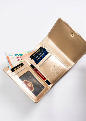 Šis maks ne tikai glabā visas jūsu kartes, bet arī nodrošina to drošību ar integrētu RFID aizsardzību. Tā vidējais izmērs ļauj to ērti nēsāt gan somiņā, gan kabatā. Zelta krāsa piešķir eleganci un ekskluzivitāti, tāpēc šis maks kļūs par lielisku akcentu jūsu ikdienas stilā.