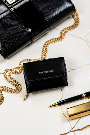 Šis elegantais sieviešu maks no Peterson ir izgatavots no augstas kvalitātes īstas ādas, kas nodrošina izturību un stilīgu izskatu. Melnā krāsa piešķir tam klasisku un daudzpusīgu izskatu, kas labi sader ar jebkuru tērpu.