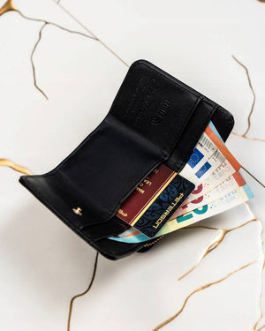 Šis maks ir ne tikai kompakts, bet arī funkcionāls, ar pietiekami daudz vietas jūsu kartēm. Turklāt integrētā RFID aizsardzība palīdzēs aizsargāt jūsu personas datus no neatļautas skenēšanas.