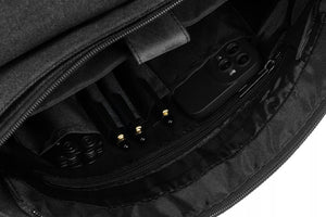 - Īpašs nodalījums: paredzēts 12 collu klēpjdatoram, nodrošinot ierīces drošu glabāšanu.