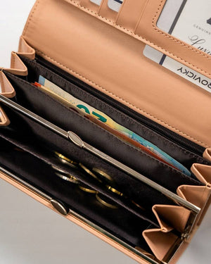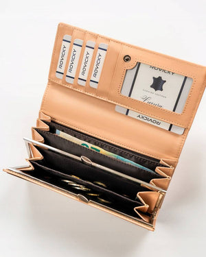 Šis elegantais sieviešu maks no 4U Cavaldi ir lieliska izvēle tiem, kas novērtē stilu un funkcionalitāti. Izgatavots no eko ādas, tas ne tikai izskatās grezni, bet arī ir videi draudzīgs. Spilgti rozā krāsa piešķir ekskluzivitāti, un lielais izmērs nodrošina, ka jums būs pietiekami daudz vietas visām jūsu mantām. Makam ir 6-10 karšu nodalījumi, nodalījums monētām un RFID aizsardzība, kas palīdzēs aizsargāt jūsu personas datus. Tā izmēri – 9 cm x 18,5 cm x 3 cm – ļauj to ērti uzglabāt rokassomiņā vai mugursomā.