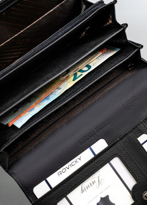 Šis elegantais 4U Cavaldi Q53 sieviešu maks ir lieliska izvēle tiem, kas meklē stilīgu un funkcionālu aksesuāru. Izgatavots no dabīgas un organiskas ādas, šis maks ne tikai izskatās grezns, bet arī ir izturīgs. Melnā krāsa nodrošina daudzpusību, tāpēc tas lieliski piestāvēs jebkuram tērpam.