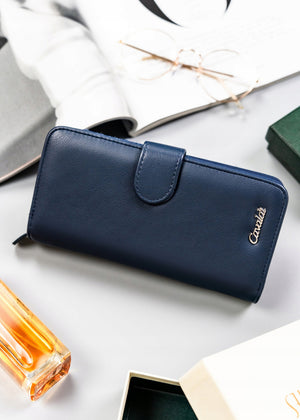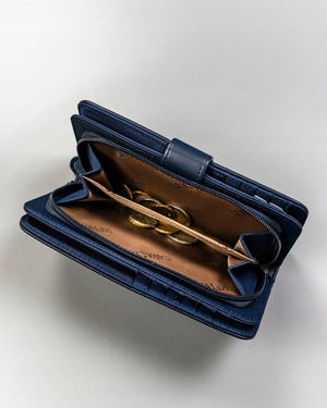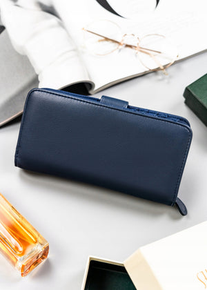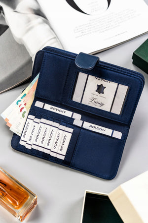 Šis elegantais un ietilpīgais maks ir lieliska izvēle sievietēm, kuras novērtē praktiskumu un stilu. Tā tumši zilā krāsa piešķir izsmalcinātību, savukārt lielais izmērs nodrošina, ka visas jūsu kartes un monētas tiks kārtīgi uzglabātas.