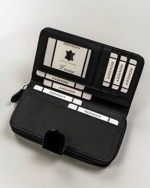 Šis elegantais melnais maks no 4U Cavaldi ir lieliska izvēle sievietēm, kuras novērtē stilu un funkcionalitāti. Lielais izmērs un vairāki karšu nodalījumi nodrošina, ka viss nepieciešamais ir viegli sasniedzams.
