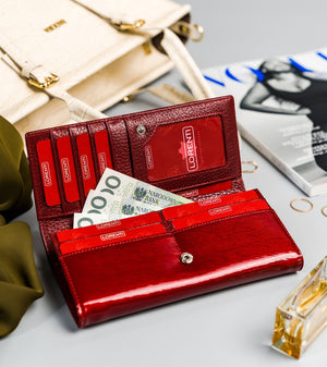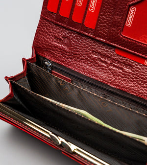 Šis elegantais Lorenti maks ir lieliska izvēle sievietēm, kuras novērtē kvalitāti un stilu. Izgatavots no īstas ādas, tas ne tikai izskatās grezni, bet arī ir izturīgs. Sarkanā krāsa piešķir tam izsmalcinātību, un lielais izmērs nodrošina, ka viss nepieciešamais ir pa rokai. Ar 6-10 karšu nodalījumiem un atsevišķu nodalījumu monētām šis maks ir praktisks un ērts ikdienas lietošanai.