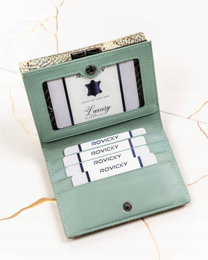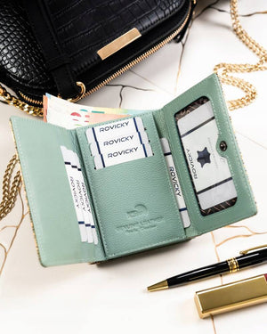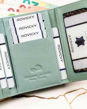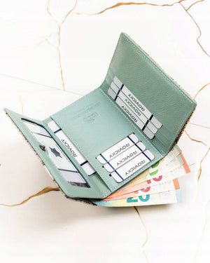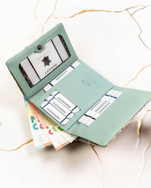 Izmēri: 9,5 cm x 12,5 cm x 3 cm, nodrošinot, ka maks viegli iederas rokassomiņā vai kabatā.