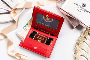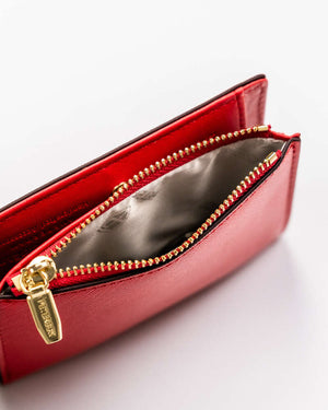Šis elegantais sarkanais maks ir aiztaisāms ar ērtu rāvējslēdzēju, nodrošinot drošību un ērtības.