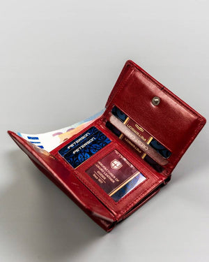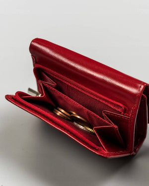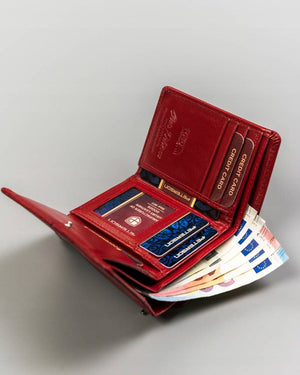 Šis maks ir kompakts, tomēr ietilpīgs, padarot to ideāli piemērotu ikdienas lietošanai. Tā sarkanā krāsa piešķir tam izsmalcinātību un eleganci, un daudzie karšu nodalījumi nodrošina, ka jums vienmēr būs vieta visām jūsu kartēm.